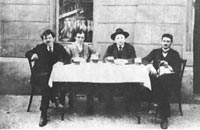 Jaroslav-1 y Svejk-1, ilustraciones de Josef Lada para "Osudy dobrého vojáka Svejka za Svetové Války", de Jaroslav Hasek, publicado por "Ceskoslovensky´ Spisovatel, Praha, 1990. Jaroslav-2 -la mancheta amarilla- también es de Lada, publicada en "Jaroslav Hasek und der brave soldat Schwejk", de Radko Pytlík, editado por "Herausgeber Ministerium für Kultur der CSR und der Tschechische Literaturfonds Erscheint im Verlag Panorama", Praha, 1983. Las tres fotografías son de una colección conmemorativa del 1er centenario del nacimiento de Hasek, en editorial "Panorama", Praha, 1983.
