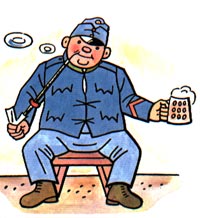La burlesca lucha del santo bebedor de cerveza contra el alcoholismo desde el interior de una cervecería, los libelos difamatorios salpicados de pretericiones y trapos sucios de los políticos y otros animales, la doble moral católica, las contradicciones de soplones y beatos, la nacionalización de porteros y sacristanes, las multas a los ciudadanos pobres por hacer sus necesidades en la vía pública o el exceso de celo ciudadano como método más eficaz de hacer aflorar a la luz la descomposición del anquilosado aparato imperial, constituían algunos de los motivos recurrentes de su oratoria, de un torrencial fluir de la conciencia crítica, que hace mofa y befa de las Instituciones, y se regocija con picardía a cuenta de los subalternos y a cuento de los episodios bufos de sus correligionarios en la labor de proselitismo del PartidoLa peregrinación apostólica del partido-, entre otras atrabiliarias extravagancias propias del sentimiento cómico de la vida del bravo soldado Svejk, conservadas en la galería de espejos deformantes de las jarras de la cerveza -pues también los esperpénticos espejos del madrileño Callejón del Gato se hallan a la entrada de una cervecería, que blasona de ser la auténtica cuna de la genuina patata brava- de sus compañeros y amigos, en un juego de perspectivas que nos brinda Na sdravie!- un panóptico de este personaje redondo, histriónico y lumpenario, borrachón impenitente y declaradamente antimilitarista, como lo confirmará el testimonio de colaboracionismo burlón y exceso de celo de su esposa Jarmila Hasková -en Un registro domiciliario-.