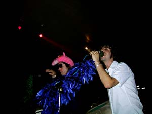 Al grupo le gustaba hablar con el público y proclamar su afición por substancias que no cumplen la normativa legal establecida, lo cual hacían en complicidad con los oyentes. Diversión hubo y música también. Desarrollaron su primer y único CD con una maestría excepcional ya que a pesar del descontrol, tocan muy bien y con mucha personalidad. Me gustó la guitarra wha wha y los arreglos del bajista, contando también con un batería excepcional. Las voces las ponen tanto el bajista como el guitarrista y ambos son muy buenos. El estilo es casi una simbiosis de la historia del Rock, de los sesenta hasta ahora, ya que había momentos de psicodelia, mezclada con electrónica y bases house, para pasar a guitarreos machacones de los setenta, mezclándose con las voces de los Byrds o de Paul Mackartney, sin olvidar la chulería del Glam y de Marc Bolan, haciendo también guiños al indi - rock, al funk y al garaje, en definitiva todo un espectáculo. Me gustó mucho Feelin Down 01, Sidonie Goes To Varanasi y Ahora Entiendo a Gene Clark. Mientras haya Sidonie hay esperanza. ¡ Cómo será su show después de treinta años !. |