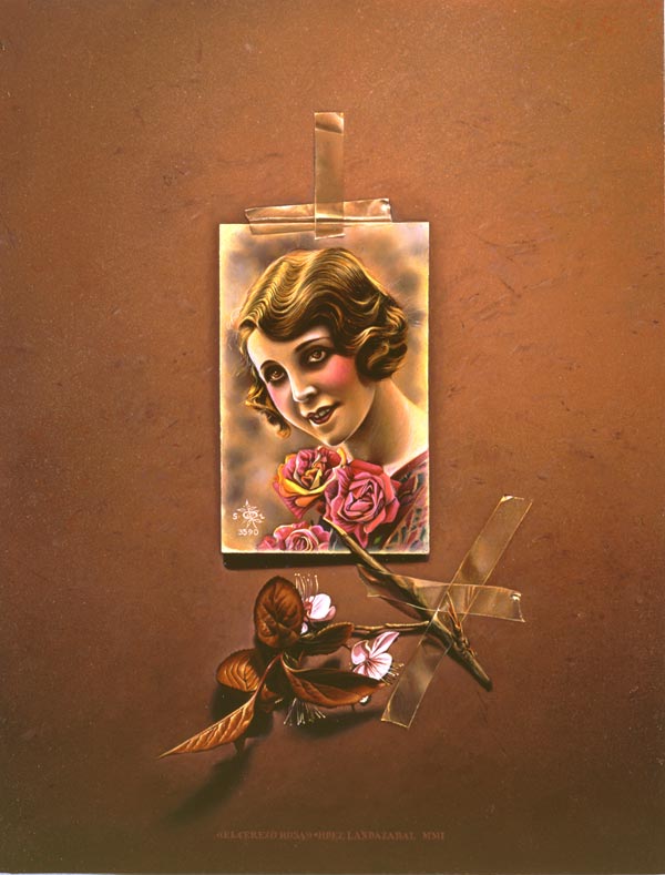 Hdez. Landazabal ha colgado, sobre el álbum de paredes impolutas de la Galería Kur, la recreación de algunas de las estampas de la colección Arte y Color con que desde su juventud viene dando la réplica al de Vida y Color de su vitoriana nada victoriana- infancia, miniando los sobredimensionados cromos que dan vida a las ventanas ciegas de sus viñetas, iluminando el santoral profano de sus trampantojos sub specie albi con la minuciosidad técnica y la morosidad de la labor bien hecha del artista en su celda, y esa paciencia de la vida retirada en su estudio monacal y canto-, lejos del mundanal ruïdo.