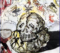 Don Juan Tenorio, que lucía tatuada en el brazo, bajo la calavera rubricada por huesos de perro en aspa burlangas que escapa de las casas de mala nota a perros muertos- o huesitos de santo cruzados -como en el pabellón pirata de los sepulcros profanados-, la leyenda Amor de madre, se postró de hinojos, aquejado de un fuerte empeoramiento de su complejo de Edipo y, luego de invocar a su puta madre, respondió al espectro:
