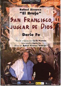 Con el humor como máscara carnavalesca - no es lo mismo ser gracioso que estar en Gracia, como El Brujo, agraciado con un don que le hace congraciarse con el público- y desacralizadora de los trucos del Poder apología de la guerra, diatriba contra el Papa y otras órdenes religiosas, o derribo de las torres de Asís-, para reconstruir con ingenua picardía la ermita de la vida buena, y el relativismo irónico y gótico de los puntos de vista que tira por tierra los Absolutos del Poder románico y feudal, va construyendo un edificio interpretativo las voces y gestos con que imita y emula, mima y remeda a todo bicho viviente- a base de deconstruir textos sagrados o profanos, desde la hagiografía de Francesco o el propio prólogo de Fo a la auto-ironía con respecto al propio discurso teatral del actor, quien teje y desteje los contextos históricos, literarios y sociales hasta quintaesenciar el mensaje -¡pásalo!- revolucionario de Francesco, mediante flujos y reflujos que ligan pasado y presente okupas, sin papeles, hippies o alternativos, kale borroka y Aznar-, y rompe el discurso vertical y unidireccional con un juego dialógico, de ventrílocuo que habla con las tripas- y que va de las grotescas onomatopeyas de los hermanos de Francesco o las mil voces del retablo de la vida -y maravillas- del santo a los homenajes a otros juglares Paco Rabal, Fernán-Gómez o Karol Wojtyla-, o que se enreda en la interacción, en vivo, en directo y en caliente pese al frío de la noche-, con su auditorio natural, sin ahorrar desenfadadas puyas a la entidad patrocinadora del auto.
