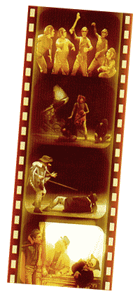 El espectador que aspirara a seguir el hilo de la trama de AlucineCinema/Zinema- se encontraría en sus inicios la secuenciación de la irracionalidad de la Prehistoria humana: desde los homínidos de Odisea Espacial allá donde estuvo el paraíso, no el gallinero-, pasando por los monos de Tarzán extraños en el paraíso-, hasta llegar al plato fuerte de King-Kong duelo en el paraíso-, gorilas en la niebla de un humo que crea la atmósfera propicia para la mutación antes de que se represente en escena la sinrazón propiamente humana, como la del nazi alienado y alienante Niebla y humo- o el maléfico Sir Dark, previos a la fumata blanca de los héroes positivos como Indiana Jones o Supermán o de las heroínas, tan ardientes como Gilda fumando espero al hombre que yo quiero-, y la posterior aceleración vertiginosa de un carrusel de acciones marcadas por el activismo y la ocupación permanente del espacio en virtud del horror vacui- que disipa los restos de orden racional de la secuenciación, dispersas las acciones mutantes en heterogéneo batiburrillo de mosqueteros y piratas, oficiales, vaqueros, indios o caballeros-, y arrastra al espectador hacia un frenesí cinético, disparatado, que tiene más de Mortadelo que de Héroe de las mil caras, de un caricaturesco Carnaval que de una danza de máscaras, de viñeta de tebeo infantil-juvenil que del divertido sueño loco de una mañana de invierno.