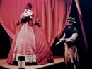 Y eso porque los personajes, figurones deshumanizados hasta el esperpento a base de apósitos, se ocultan bajo la máscara del personaje-tipo intercambiable por cualquiera de su estamento y la falsa careta de su hipocresía proyectando sus sombras agigantadas en el telón de fondo negro como la honra-, distorsionadas y deformes, de barraca barroca.