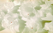 El lenguaje poético es considerado por la mística sufí como el único modo de comunicar lo inefable. Partiendo de esta premisa, no es casual la conjunción de música, poesía y mística en la obra de una artista de la talla de Ana Crespo. Sirvan los títulos de anteriores exposiciones- Atravesando el tiempo (2002), El ángel pavo real (2001), Luz, más luz (2001), Rituales de sanación, (2000), Alquimia (1997) y Alquimia del corazón (1994) - como alusión a sus más profundas inquietudes. Tras finalizar su tesis doctoral sobre Sufismo y color, Ana Crespo (Madrid, 1964) dedica su primera individual a la recientemente fallecida compositora María Escribano, con quien compartió amistad y proyectos. La luz, objeto de persecución estética de la autora, aparece en cada una de las fotografías surgiendo desde etéreos papeles de seda que se sitúan en la línea divisoria entre materialidad y vacío. En el centro de estas sutiles formaciones, el destello de un diminuto círculo rojo ofrece el justo contrapunto de pasión y sustanciación: la perla y el rubí; el fuego y el agua. Utilizando como referente textos de reconocidos místicos y poetas de la tradición sufí - Rumi, Ibn Arabí o Kermani- la experiencia mística se nos describe como un proceso semejante al de la transmutación alquímica que experimentan ciertos metales antes de convertirse en oro.