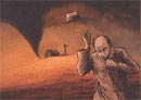 Porque, haciendo honor al tópico turístico, sobre el escueto paisaje, el sobrio paisanaje hace gala de una sabiduría popular que cuaja en la Castilla profunda paradoja terminal esta de que la España profunda ande siempre por los altos, que no tirando por lo alto-, en unos viejos estoicos y cabales, dueños de un sentido del humor negro, espontáneo y natural que los acerca, con la proverbial parquedad de un castellano pueblo llano, a los filósofos sepultureros del Valle de Josafat-, a la cháchara de compadres y comadres del costumbrismo o a las disquisiciones metafísicas sobre todo lo humano y lo divino de un Amanece que no es poco, arraigados en ese tempo lento del fatalismo existencial de un fin de raza.