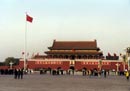 En la ancha plaza, escoltados por el Museo de la Revolución y por el Gran Salón del Pueblo, una par de decenas de chinos intentan vender abanicos, sombreros y banderas de la República Popular. No siempre lo consiguen pues, de vez en cuando, son retirados con cierta discreción por policías de paisano. En el extremo de la plaza en el que me habían indicado que algún grupo podría celebrar su sesión matutina de tai-chi, dos occidentales intentan hacer jogging entre una bruma húmeda y caliente. Cada dos horas se produce un relevo en la guardia que custodia el Monumento a los Héroes de la Nación, relevo que es seguido con curiosidad por grupos de indígenas y extranjeros. Al fondo de Tian`anmen, dentro de un sarcófago siempre abierto, en un mausoleo de altas columnas, reposa cerúleo el Gran Timonel.