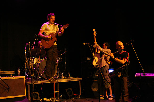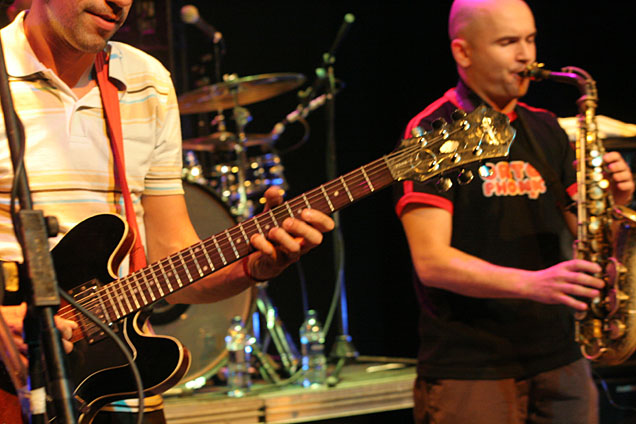 DJ, batería, percusión, bajo, teclados, guitarra y saxo generan un torrente de sonido que no puede hacer otra cosa que sorprenderte e invitarte a moverte.