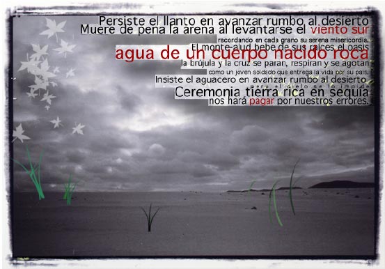 Tina Escaja, también poeta, parte de su propia biografía. Ella es una emigrante, un producto de una sociedad concreta -un país bajo una dictadura que ella vivió durante su infancia y pre-adolescencia- trasladado a otra que está viviendo un proceso inverso en libertades civiles. De ahí que su poema "Una, grande y libre" asocie la proclama franquista a la realidad neo-imperialista de su país de acogida. Sus poemas, en una línea de expurgación de lo sobrante ligada a una nueva visión ultraísta, llaman al asociacionismo y a la lucha, al igual que critican la "unidad" en la línea en que lo hacen hoy filósofos como Vattimo. Un discurso que la artista ve necesario cuando la voluntad individual es quebrantada por la acción reduccionista de los gobiernos contra la sociedad civil, masa a la que se trata de desestructurar y enfrentar para alienar su capacidad de respuesta conjunta. Su llamada a la dignidad y la cordura a través de las múltiples voces sin rostro que entonan sus versos supera lo que tiene en sí de pirueta técnica o estética para establecer relaciones de extraña correspondencia entre individualismo y colectividad.