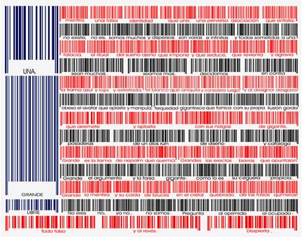 La colaboración entre Tina Escaja y MJ Tobal ha dado sus frutos en el Fluxus "Código de barras". El discurso de liberación femenina se presenta aquí de forma clásica, e incluso directamente dirigida contra el hombre, no tanto ausente como reducido a un reconocible símbolo: la barra enhiesta, el cetro de mando. Pero su solución final (la desnudez frente a la coacción, la libertad frente a la restricción) y la forma en que expresa cómo la esencia de lo femenino es capaz de deglutir cualquier ofensa o cualquier limitación parece tratar de abrir nuevos frentes de diálogo. La visión pictórica de las Tres Gracias que ofrece Tobal, presentándolas como figuras similares a células, neuronas u organismos vivos primigenios con diferentes grados de vinculación sináptica o nodular, incorpora un revulsivo y nada complaciente mensaje biológico en la antítesis de la representación estereotipada de la musa femenina como un "objeto cautivo" a la voluntad del deseo masculino.