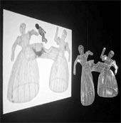 El Deutsche Bank nacional, en Barcelona con lo que optaba al internacional de Berlín, que también gané. Consistía en una instalación de tres piezas tridimensionales de papel fotograbadas y agujereadas y una proyección de video sobre poliuretano translúcido.