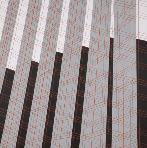 Desde siempre, el tema que ha motivado mi trabajo ha sido el paisaje. Primero, el paisaje natural, los espacios abiertos, ilimitados, inmensos campos de trigo, el mar... espacios que existen, que he visto, recorrido, vivido y archivado en la memoria. Me interesaba mucho poder transmitir las emociones que se generan a partir de la observación de un lugar. Con este tema estuve trabajando dos años, y el fruto de esta labor quedó reflejado en la exposición "Paisajes mentales" (2003). Después de esta exhibición, mi obra comenzó a transformarse. Imagino que el hecho de vivir en una ciudad como Barcelona y, por aquel entonces, tener el taller en una de las zonas más industrializadas de Hospitalet, imprimió su impronta en mi trabajo: Las líneas que hasta entonces habían sido horizontales y sutiles comenzaron a quebrarse, a hacerse más agresivas, más contrastadas. Los tonos ocres, los dorados y los azules, dieron paso a otros más complejos en los que se intuía la artificialidad de la mano del hombre. La ciudad comenzaba a aparecer en mis paisajes de una manera inconsciente, y el resultado de esta investigación fue la muestra "Visiones urbanas" (2004). A partir de aquí, mi interés por la ciudad fue creciendo, sobre todo por el alma de los que la habitamos, de sus ritmos, sus silencios, sus soledades, sus monotonías y sus recorridos. Empecé a trabajar a partir de una frase de Heidegger que habla de aprender a habitar la ciudad poéticamente, siendo consciente de que, como dijo Calvino, la ciudad, como símbolo, concentra reflexiones, experiencias y conjeturas. Fue una labor dura, ya que trabajaba exclusivamente a partir de la memoria, de lo que había quedado en mí tras conocer, vivir y sentir diferentes urbes. Cada obra era un intento de revivir, de entender aquellas emociones y explicarlas de una manera poética y sencilla, de ahí el título que recogía la presentación de estas piezas: " Construyendo entornos" (2005). Entonces nacieron las dudas, el negarme a repetir, la necesidad de dar un paso más. Dejé de pintar por unos meses y me dediqué a recorrer y estudiar la ciudad. Viajé a Londres, a Paris, a Berlín, a Nueva York... Intentaba estar muy atenta a lo que vivía y sentía en cada lugar, lo anotaba y recogí todas estas emociones y sensaciones en una gran cantidad de imágenes fotográficas. Regresé al estudio y para superar este parón, amplié las imágenes que me interesaban, seleccionando partes, modificando otras, y de ahí, pasé a realizar dibujos sencillos, líneas que se cruzan formando tramas y planos enigmáticos. La idea me motivaba lo suficiente como para trasladar aquellas imágenes a la tela. Y esto es lo que hago de unos meses para acá. Soy consciente de que mi obra se está volviendo más formalista. Es obvio que sigo tratando el mismo tema, pero el proceso de trabajo ha cambiado radicalmente: de partir de la memoria he pasado a arrancar de la imagen capturada de la realidad, seleccionada y en ocasiones modificada para lograr composiciones más provechosas. No sé donde me llevará esto (esta es la parte mágica de la labor creativa) pero sé que estoy disfrutando de mi trabajo enormemente, y que lo que va naciendo me inquieta y me motiva para continuar por esta línea y olvidarme, al menos temporalmente, de ciertos discursos teóricos y filosóficos que, tras haber estudiado el Posgrado en Filosofía Contemporánea del Arte, me estaban empezando a asfixiar. Ahora sé, más que nunca, que necesito de la pintura, y que después de haber buscado respuestas en otros lenguajes, no puedo ni debo negarme como pintora.