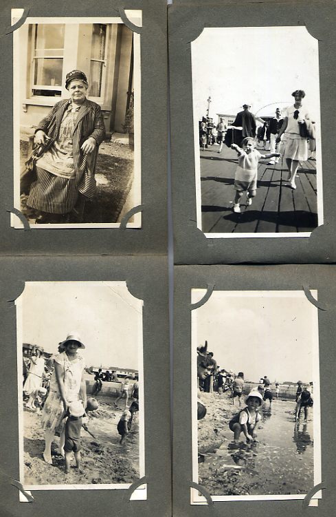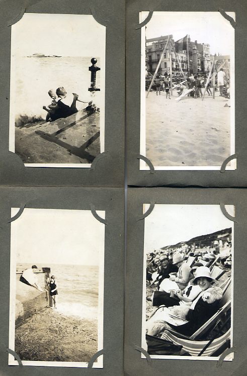 Es así que hallar, en una venta callejera, un par de pequeños álbumes de pastas de cartoncillo, hechas casi añicos por el manoseo humano y el lento caminar del tiempo, se me presenta como un magnífico descubrimiento; máxime si lo que trae en sus páginas son unas magníficas instantáneas de un viaje realizado algún verano de entreguerras, en una playa europea que habrá de permanecer anónima. Y no es para menos, considerando que las imágenes allí guardadas, sutiles, hermosas, inmutables, sostenidas por frágiles tirillas de cartón, sin la ampulosa prepotencia de aquellas que se declaran arte tan pronto ven la luz, nos muestran un viaje en familia.