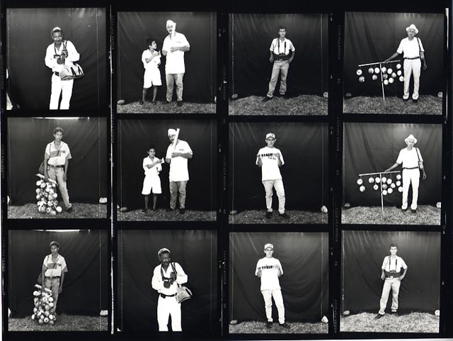 Las reacciones humanas se presentan casi siempre con mínimas variables. Una vez el individuo se encuadra en el marco del telón, equivalente a las tablas, en su referente teatral, se establece entre sujeto y fotógrafo un entrevero sutil de voluntades que nutre positivamente la trama.