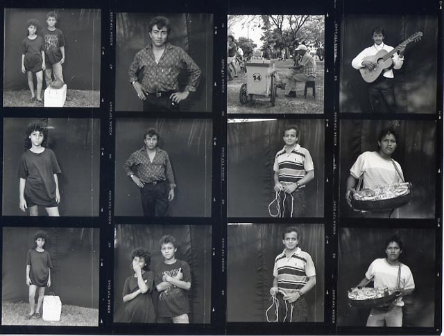 Al cabo de varias semanas de estudiar la escena me atreví a montar mi operación en medio del tumulto. Un viejo telón de tela negra heredado de un grupo de teatro local sería mi caballito de batalla, el fondo sobre el que habrían de desfilar mis sujetos, instrumento vital de mi cinéma vérité en la fotofija.