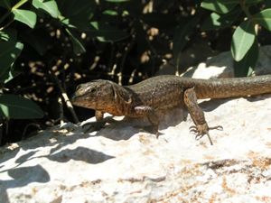 Un instantáneo viento pareció reírse del hecho. Mucha piedra junta para dar acta de tanto esfuerzo. El lagarto, pese a todo, ya no era el mismo. Comprendió que el haber subido era un paso previo a la posterior bajada, una forma en la que invertir el tiempo, que necesariamente deberá ser gastado. La inversión le trajo conocimiento, el sueño pasó a ser realidad, y en el lugar se estaba a gusto y con todo tipo de insectos. ¡Dolce Vita so previo esfuerzo! El lagarto feneció de cansancio sintiéndose descubridora el más vital descubrimiento: la Vida era eso, algo que muchos compartían, pero con diferente utilidad e incentivos, para un mismo terreno...