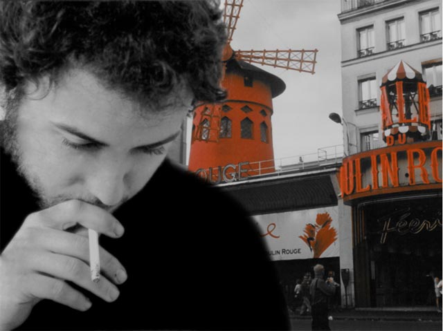 Amour, mon amour tan dañado por lo que no debí aspirar, tan ahuecado, viejo, saciado de humo, hecho humo, bajo el peso redondo y rouge.