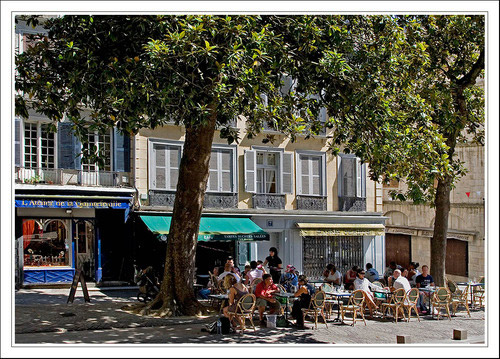 Es ésta una plaza triangular, una especie de distribuidor del centro de Bayonne que inerva, y muy particularmente, la rue d'Espagne, y que ha sido magníficamente retratada por Jean Pattou, según puede verse en la exposición que presenta este arquitecto-acuarelista en el Musée Basque.