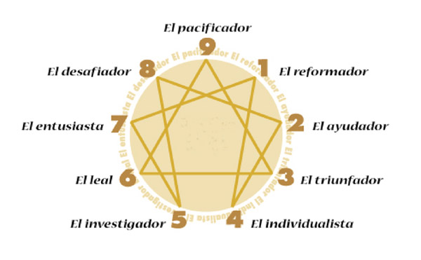 El eneagrama contempla nueve tipos de personalidad básica, a partir de los cuales es posible trazar un mapa de cómo es nuestra personalidad (véase imagen).