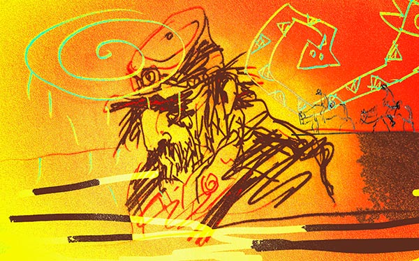 El indio, le dijeron ayer a Emilio, me dijeron ayer, está al otro lado de los Grandes Médanos. Hoy ya no. No están los médanos. El coronel Emilio se acaba de dar vuelta buscando el rostro de sus soldados: sombras dolientes que vagan por el desierto sin rastrilladas ni duraznillos blancos: temores ambulantes por tembladerales desconocidos: polvo suave por donde galopan sigilosas las luces malas de Antiguos Perdidos. Un gaucho rezagado se ha dormido. Yo soy Emilio y no conozco el rumbo. Y de él se escapan recuerdos que sueña. Se ha dado cuenta al volverse: no conoce el rumbo. Si todos duermen la pampa se llenará de sueños y los caballos se ilusionarán con aguadas frescas. ¡Chajáachajáa! Hasta la noche nos quema sin el agua y sin el indio. Tlop tlop tlop: la distancia es siempre horizonte. Mañana el sol aparecerá por algún lado y nos aplastará contra el suelo hasta que se hunda en el llano. Y el horizonte, labio sin rostro, volcará tanta soledad que no habrá lugar para la tristeza.