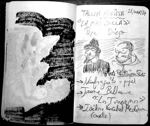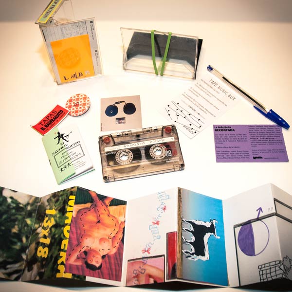 Allí estuve participando, con un grupo heterogéneo y entusiasta. Elaboramos una “edición taller” que se denominó La Más Bella RECortada. Utilizando como contenedor antiguas cintas de cassette recuperadas (con el correspondiente boli Bic tan vinculado a ese elemento …), se incluyeron piezas de Isidoro Valcárcel Medina, Jaime Vallaure y “Naufraguito”, así como colaboraciones de los propios participantes.