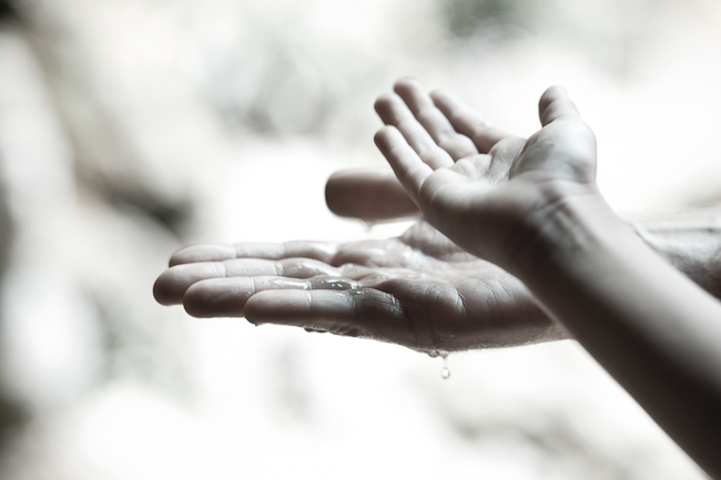 Tu mano se muestra mojada y presente,