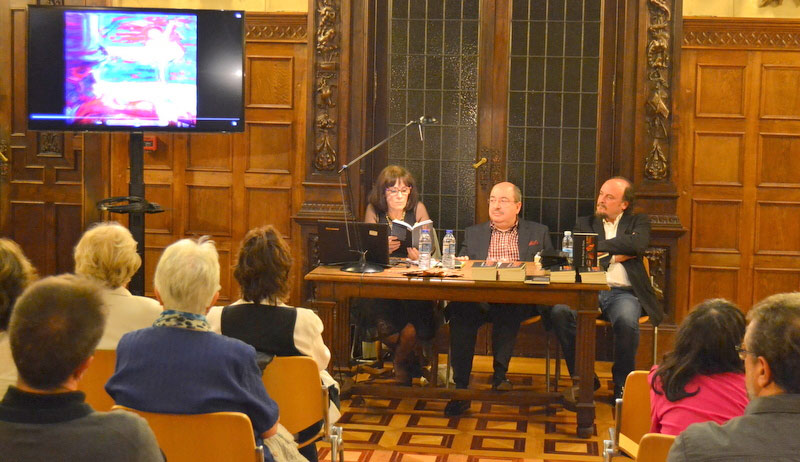 Acompañaron a la autora el escritor y editor Roberto Lastre, el profesor y poeta Juan L. de la Cruz y el pintor José Velázquez de Castro