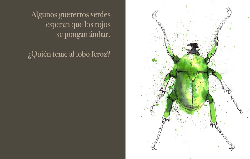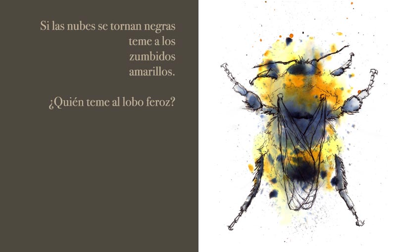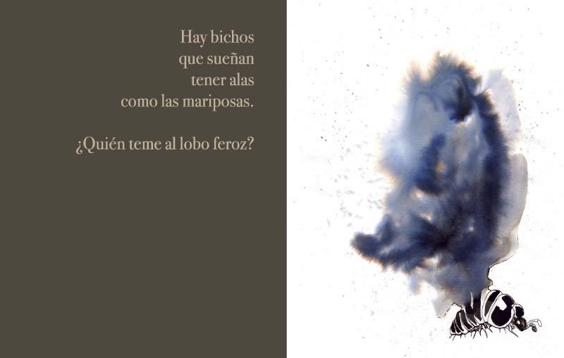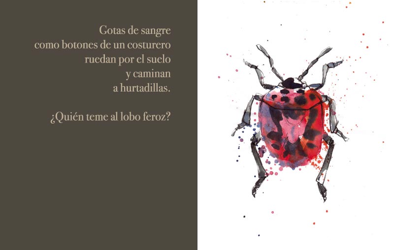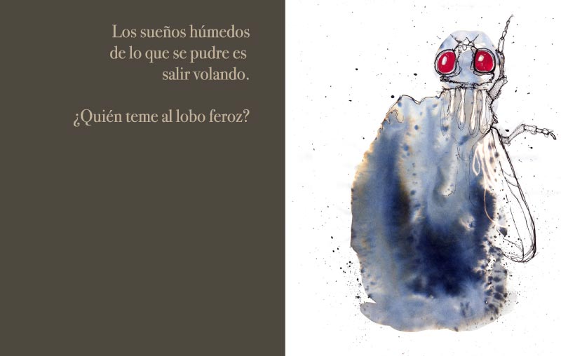 Lo mismo que se miran las nubes y se les busca forma a las manchas así obtenidas se les pretende convertir en insecto. Pastoreo de tintas. Reconducir la mancha con una breve intervención, un anclaje, algo en lo que apoyarse y que le de intención a lo que empezó por pura casualidad.