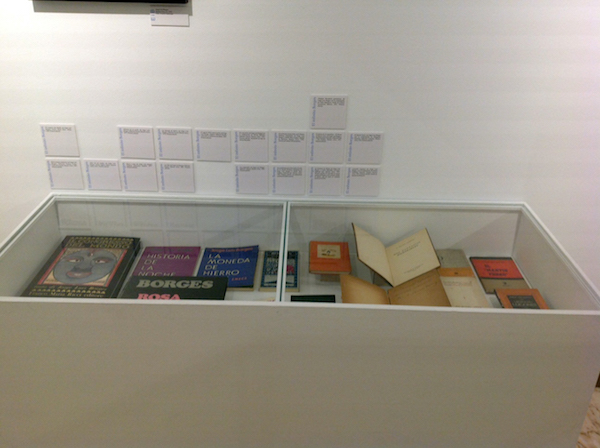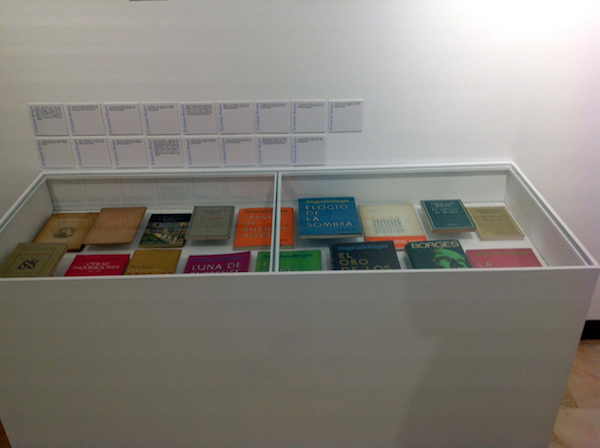 Hay un ejemplar de Wine, wáter and song firmado por Chesterton y por Borges en Granada, 1919, de acuerdo a su costumbre de firmar y fechar los libros que incorporaba a su biblioteca. Hay libros de Borges de la biblioteca de otros autores como El Aleph de Julio Cortázar, Poemas 1922-1943, dedicado por Borges a Gómez de la Serna y su mujer, el ejemplar de Otras inquisiciones de Alejandra Pizarnik lleno de anotaciones. La traducción de Borges de Leaves of Grass con ilustraciones de Berni, monedas, plumas, sellos, cartas, proyecciones. Un contenido excepcional.