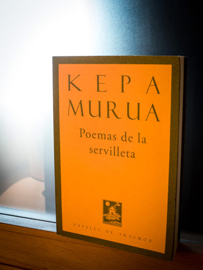 Kepa Murua da voz a esos pequeños trozos de papel en su libro Poemas de la servilleta, un cuaderno íntimo del oficio del escritor que se despega del tiempo para escribir el ahora. La servilleta representa un motivo, el instante único, el latido de las palabras que el escritor baja al papel: “La mano es una prolongación del corazón”.