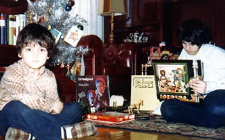 Tras una pequeña búsqueda descubrí varias fotos con los regalos en el árbol. En ellas aparezco junto a mi hermano, que era un niño, nueve años menor que yo, el cual tenía sus juguetes alrededor del árbol ; y que actualmente es una especie en extinción, es decir un rockero de menos de treinta años obsesionado por la música. Mi hermano tenía sus regalos y yo tenía los míos.
