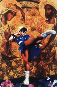 El Cutting Edge, que es la parte más moderna y rompedora de ARCO, cumple con su obligación vanguardista con más pena que gloria, radicando toda su novedad en los soportes: instalaciones y artilugios informáticos al servicio de seis proyectos de entre los cuales sólo me atrevo a destacar el de los creadores chinos, cuya obra es una crítica al consumismo y una dudosa apropiación de la cultura popular. |