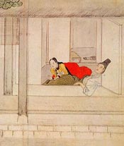 Por otra parte, la alcoba de la mujer, es no sólo un espacio abierto en tanto que social, como decíamos arriba, sino el lugar en el que el personaje termina reducido a un estado infantil. Parece que durante el día, cuando la esposa sale y no hay presencia de huéspedes, el narrador pasa el tiempo jugando fascinado con los objetos de tocador de su mujer, quemando papelitos hasta el éxtasis, viviendo una vida sexual a fragmentos, desde la mediación que le permite la contemplación de la ropa de su mujer y el olor de sus envases de cosméticos: