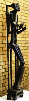 Allí descubrí la fuerza compositiva de las líneas paralelas en Ubac, los incontables matices del color negro en Soulanges. Reencontré las ensoñaciones cromáticas de Chagal, la monumentalidad tubular de Léger y el movimiento perpetuo de Cálder... Pero, sobre todo, pude admirar por vez primera L´Objet invisible de Giacometti. La aproximación de un lector/observador a una obra de arte o a un libro es una experiencia compleja y suele ocurrir que en distintos momentos de nuestra vida ese acercamiento suscita distintas comprensiones. En aquella primera lectura de la imagen de Giacometti el artificio y el sentido lúdico fueron los motivos principales de sorpresa. Motivos que apelaban al trabajo escultórico en sí, al juego mantenido entre el autor y el espacio, entre la pesadez de la figura totémica y la ingravidez del objeto invisible, entre la tensión del cuerpo y el movimiento en potencia de los brazos. Sin embargo, años mas tarde es el lenguaje profético de esta escultura lo que me fascina. El vacío contenido en las manos de la mujer parece el preludio de un espacio que a través de perspectivas imposibles reducirá y contraerá la obra posterior de este moderno rey Midas que emulando la guerra y la intransigencia de la vieja Europa disecó todo cuanto sus manos alcanzaron rozar. Las esculturas y dibujos de su segunda etapa, esas figuras afligidas por el debate entre el ser y la nada se convirtieron en los mejores intérpretes del tono vital del existencialismo y aún agitan el ánimo de todos aquellos que no han sido contaminados por el virus de la autocomplacencia occidental. Alberto Giacometti La mujer que antaño recreé en actitud devota ofreciendo al observador libertad e ironía, a duras penas puede hoy mantener el equilibrio sobre el abismo de un tiempo dominado por la liturgia de la amnesia. Su lenguaje oscuro es el lenguaje de las golondrinas y su voz sorda es la voz de Alejandra: ¿A qué, miserable de mí, |