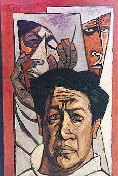 Desde la deshumanización por medio de diversos planos grises del esbozo del desnudo geometrico de El luchador (1947), pasando por la colorista intersección complementaria de sendos rostros en Los amantes (1957), y donde a diferencia de los rompecabezas picassianos integra ambas caras de un sufrimiento común en el llanto de su tercer ojo, fértil racimo de lágrimas, hasta la estilización picassiana de El violinista (1967), artista del hambre de inspiración cubista y pariente próximo de los esqueletos de La espera, recubierto por el rubor muscíneo de los cadáveres, figura sedente bajo los efectos de la música sedante de un ocre violín de oro viejo -orín: orina teñida de sangre-, atacado por unas manos sobrehumanas -la función hace al órgano-, manos del músico que afinan, mano a mano, los tonos del pintor.
